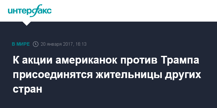 Москва. 20 января. INTERFAX.RU - Женщины из разных стран мира решили последовать примеру жительниц США и выйти на улицы своих городов на акцию против избранного президента Дональда Трампа, сообщает CNBC.