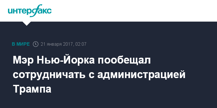 Москва. 21 января. INTERFAX.RU - Мэр Нью-Йорка Билл де Блазио готов "протянуть руку помощи" администрации вступившего в должность президента США Дональда Трампа при условии, что они "действительно займутся делом".