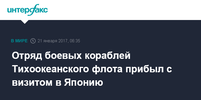 Москва. 21 января. INTERFAX.RU - Большой противолодочный корабль "Адмирал Трибуц" и большой морской танкер "Борис Бутома" Тихоокеанского флота (ТОФ) в субботу прибыли в японский порт Майдзуру.