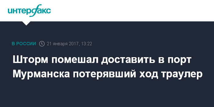 "Ветер в Баренцевом море до 30 метров в секунду. Скорость траулера и спасательного судна "Мурманрыба" сейчас составляет полтора узла, то есть, они практически стоят на месте. Такая погода сохранится еще как минимум сутки. Как только ветер начнет стихать, судно направится в район порта", - сказал он.
