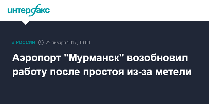 Москва. 22 января. INTERFAX.RU - Работа аэропорта "Мурманск" возобновлена после полутора суток простоя, вызванного непогодой.
