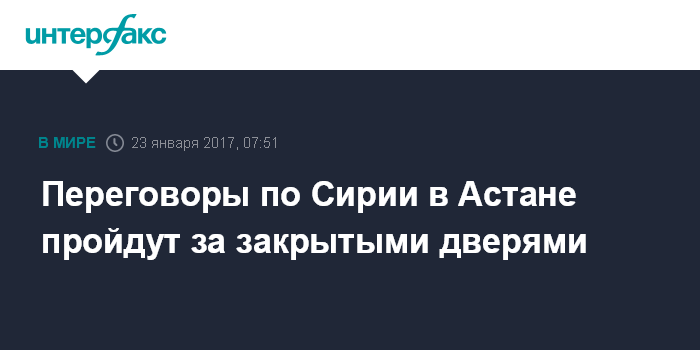 Москва. 23 января. INTERFAX.RU - Представители средств массовой информации смогут попасть только на открытие переговоров по Сирии в Астане, основная часть переговоров будет проходить за закрытыми дверями, сообщил замглавы МИД Казахстана Роман Василенко.