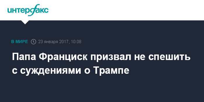 Москва. 23 января. INTERFAX.RU - Папа Римский Франциск считает, что не стоит спешить с оценками президента США Дональда Трампа.