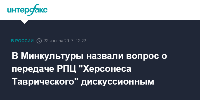 Москва. 23 января. INTERFAX.RU - Вопрос о передаче 24 объектов государственного историко-археологического музея-заповедника "Херсонес Таврический" Русской православной церкви является дискуссионным, заявил "Интерфаксу" в понедельник первый замминистра культуры РФ Владимир Аристархов.