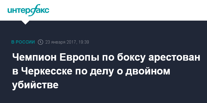 Москва. 23 января. INTERFAX.RU - Черкесский городской суд (Карачаево-Черкесия) по ходатайству следователей арестовал на два месяца двукратного чемпиона Европы по боксу Игоря Алборова, подозреваемого в двойном убийстве.