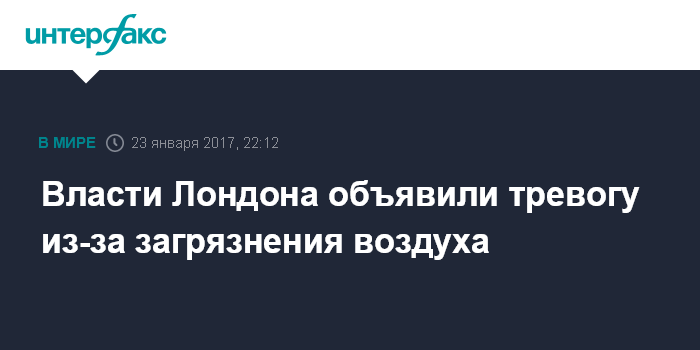 Москва. 23 января. INTERFAX.RU - В Лондоне в связи с резко увеличившимся уровнем загрязнения воздуха объявлена высокая степень тревоги, сообщила в понедельник BBC News.
