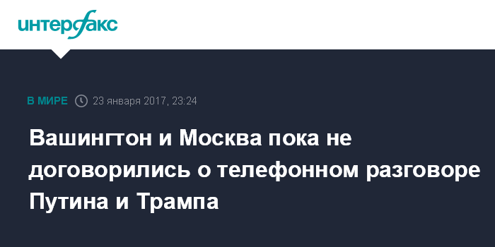 Москва. 23 января. INTERFAX.RU - Договоренность о возможном телефонном разговоре президентов РФ и США Владимира Путина и Дональда Трампа пока не достигнута, сообщил пресс-секретарь Белого дома Шон Спайсер.