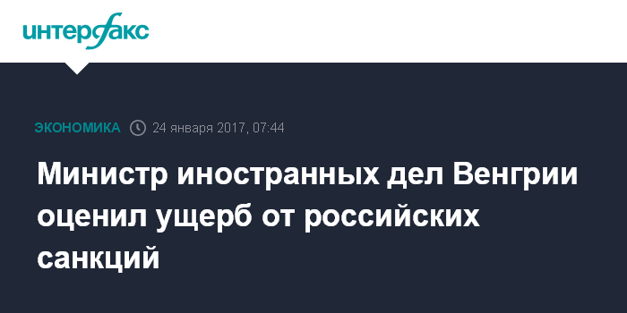Москва. 24 января. INTERFAX.RU - Министр иностранных дел Венгрии Петер Сийярто в интервью "Коммерсанту" рассказал, что из-за санкционной политики Евросоюза его страна потеряла за три года $6,5 миллиарда.