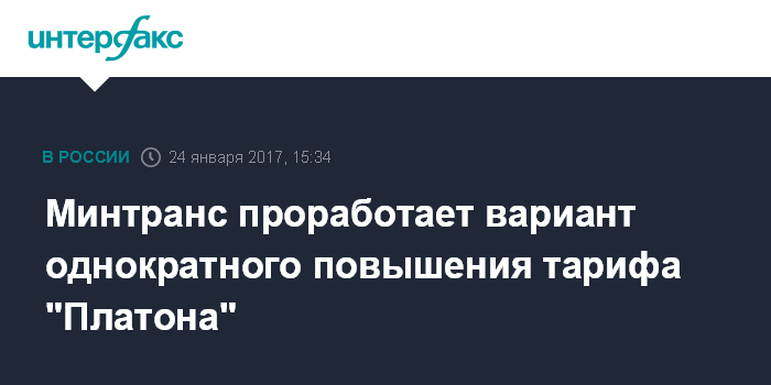 Москва. 24 января. INTERFAX.RU - Правительство РФ поручило проработать вариант однократного повышения тарифа системы взимания платы с грузовиков "Платон", сообщил журналистам министр транспорта России Максим Соколов.