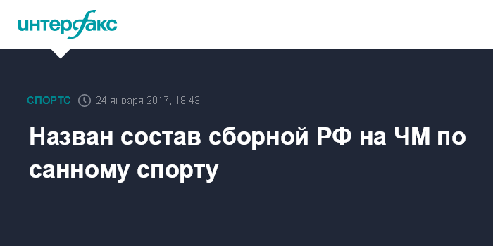 Москва. 24 января. INTERFAX.RU - Почти полтора десятка спортсменов представят сборную РФ на чемпионате мира по санному спорту, говорится в сообщении пресс-службы Федерации санного спорта России.