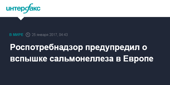 Москва. 25 января. INTERFAX.RU - По информации Европейского центра по контролю и профилактике заболеваний в странах Европы, с мая по декабрь 2016 года зарегистрирована вспышка сальмонеллеза с числом пострадавших более 450 человек, сообщает в среду сайт Роспотребнадзора.