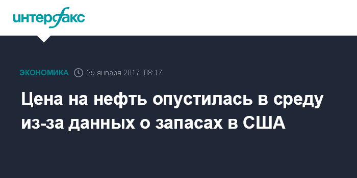 Цена на нефть опустилась в среду из-за данных о запасах в США