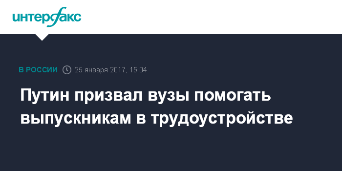 Москва. 25 января. INTERFAX.RU - Президент РФ Владимир Путин подчеркивает важность работы российских вузов со своими выпускниками вплоть до их трудоустройства.