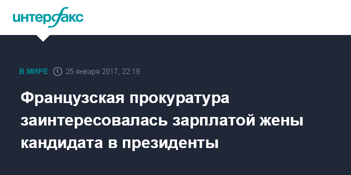 Москва. 25 января. INTERFAX.RU - Французская прокуратура в среду открыла расследование в отношении супруги претендента на пост президента Франции Пенелоры Фийон, сообщает телеканал France 24.
