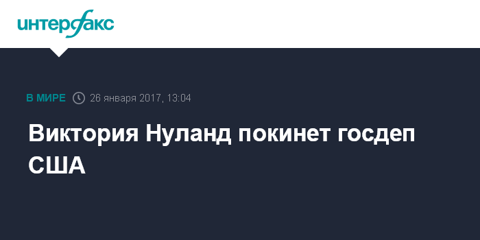 Москва. 26 января. INTERFAX.RU - Помощник госсекретаря США Виктория Нуланд, курировавшая в госдепартаменте постсоветское пространство, включая Россию и Украину, покидает свой пост вместе с группой других дипломатов.