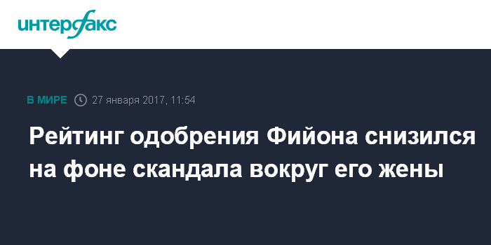 Рейтинг одобрения Фийона снизился на фоне скандала вокруг его жены