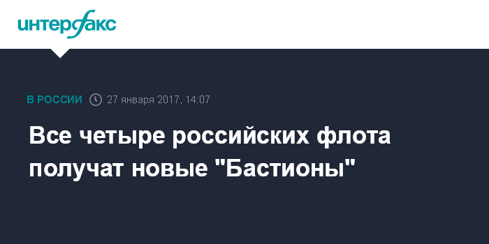 По его словам, поставка "Бастионов" на все флота ВМФ России предусмотрена в 2017 году государственным оборонным заказом.