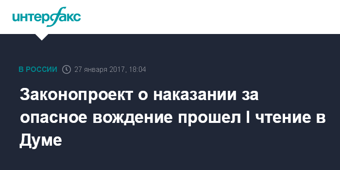 Законопроект о наказании за опасное вождение прошел I чтение в Думе