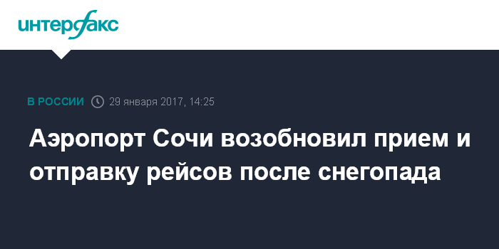 Аэропорт Сочи возобновил прием и отправку рейсов после снегопада