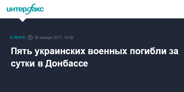 Москва. 30 января. INTERFAX.RU - За сутки в результате обстрелов позиций Вооруженных сил Украины в Донбассе погибли пять украинских военнослужащих, еще 13 ранены, сообщает пресс-центр штаба спецооперации.