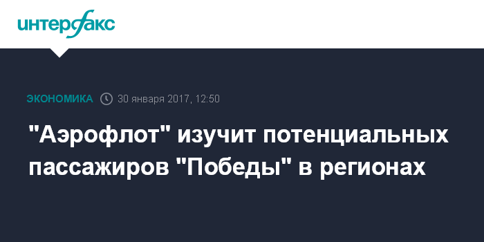 "Аэрофлот" изучит потенциальных пассажиров "Победы" в регионах