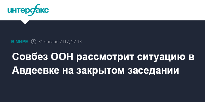 Москва. 31 января. INTERFAX.RU - Совет Безопасности ООН во вторник, 31 января, рассмотрит в закрытом режиме обострение ситуации на востоке Украины, сообщает "Радио ООН".
