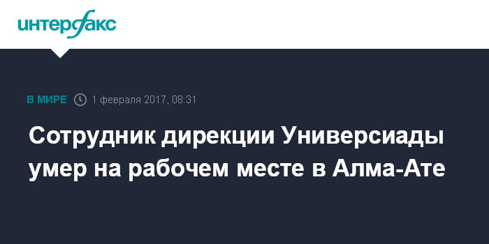 Москва. 1 февраля. INTERFAX.RU - В Алма-Ате скоропостижно скончался сотрудник дирекции Универсиады-2017 Бауржан Рафиков, сообщила пресс-служба дирекции.