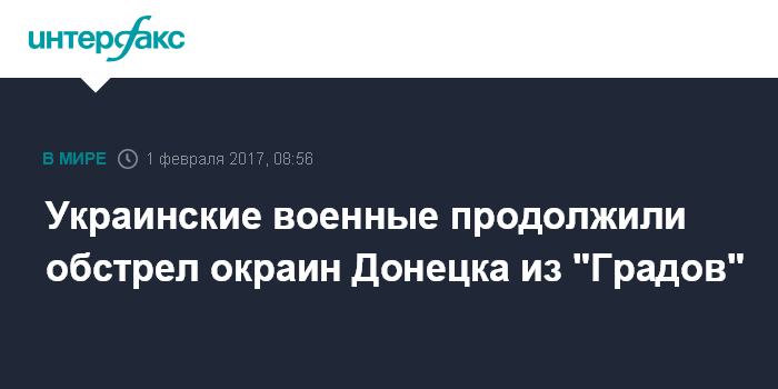 Москва. 1 февраля. INTERFAX.RU - В Минобороны самопровозглашенной Донецкой народной республики обвинили Киев в применении систем залпового огня при обстрела окраин Донецка.