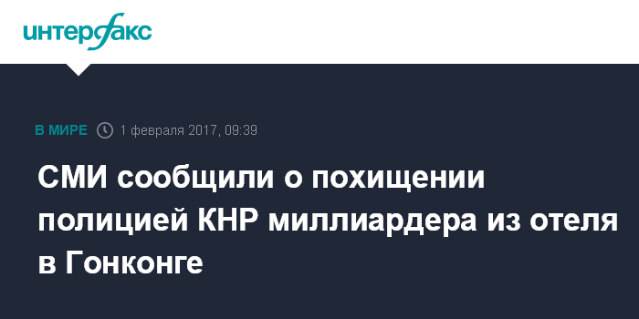 СМИ сообщили о похищении полицией КНР миллиардера из отеля в Гонконге