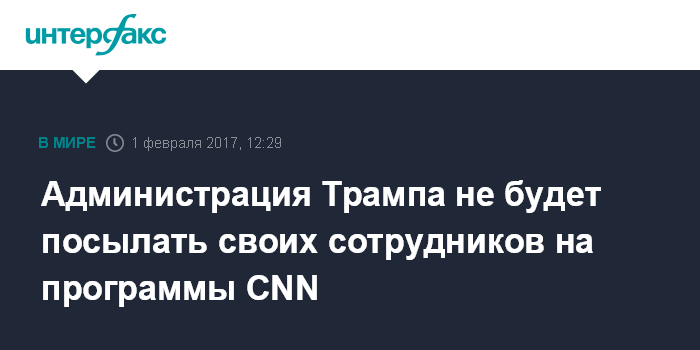 Москва. 1 февраля. INTERFAX.RU - Администрация президента США Дональда Трампа отказалась направлять своих представителей на программы, выходящие в эфире телеканала CNN, сообщает в среду американское издание Politico.