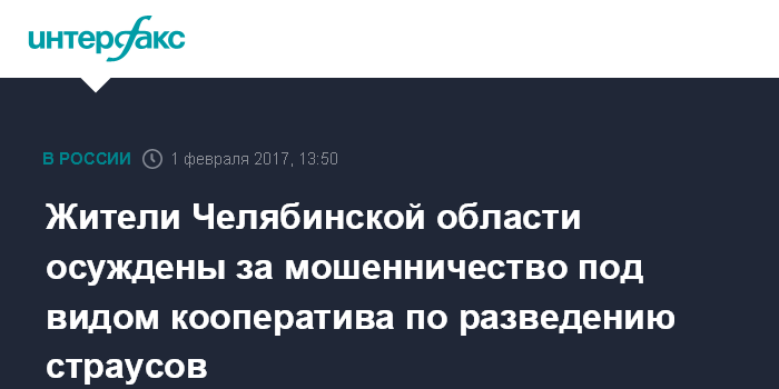 Жители Челябинской области осуждены за мошенничество под видом кооператива по разведению страусов