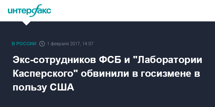 Москва. 1 февраля. INTERFAX.RU - Адвокат одного из арестованных по делу в отношении экс-сотрудников ФСБ и бывшего менеджера "Лаборатории Касперского" подтвердил, что им предъявлено обвинение в госизмене в пользу США.