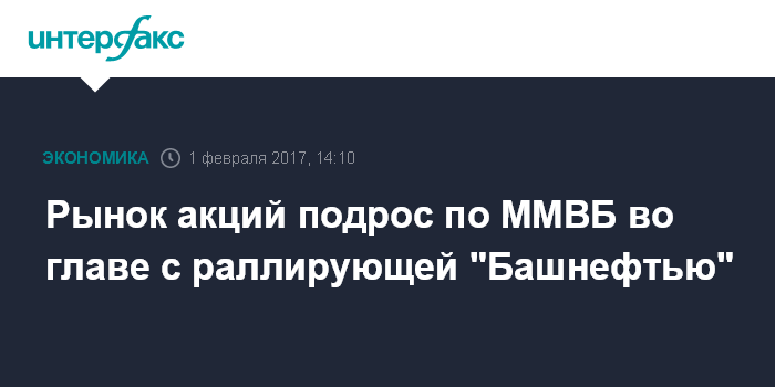 Москва. 1 февраля. INTERFAX.RU - Рынок акций РФ днем в среду подрос по индексу ММВБ на фоне восходящей коррекции мировых фондовых площадок и ослабления рубля, лидируют в росте второй день подряд обыкновенные акции "Башнефти" после завершения срока оферты от "Роснефти" ; упали бумаги "Трубной металлургической компании" после объявления о вторичном размещении бумаг в размере 13,4% капитала по цене ниже рынка.