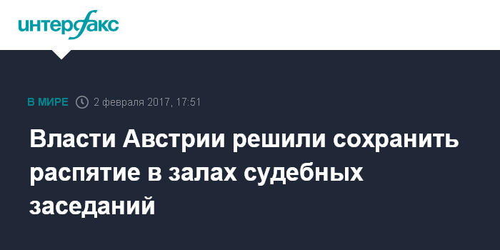 Кабинет министров решил не удалять христианскую символику из австрийских судов, где она традиционно занимала центральное место, несмотря на взятый политический курс религиозного нейтралитета в общественном пространстве страны.