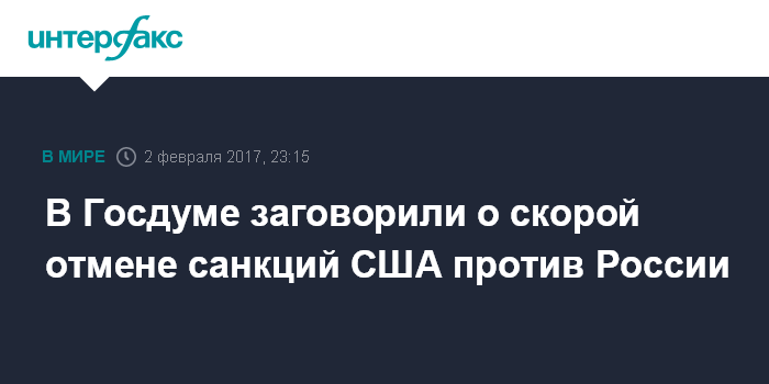 "Я думаю, что это первая ласточка, такой сигнал. Это санкции, которые Обама ввел в закрывающуюся дверь перед своим уходом. Эти санкции были импульсивными, скорее для того, чтобы насолить и усложнить возможность отмены санкций", - сказал Аксаков "Интерфаксу" в четверг.