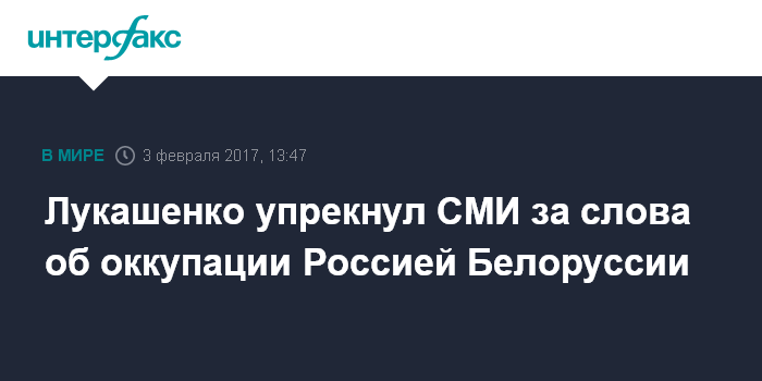 Москва. 3 февраля. INTERFAX.RU - Президент Белоруссии Александр Лукашенко заявил, что оккупация страны Россией невозможна.