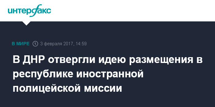 Москва. 3 февраля. INTERFAX.RU - В минобороны самопровозглашенной Донецкой народной республики заявляют о неприемлемости введения в Донбасс международной полицейской миссии.