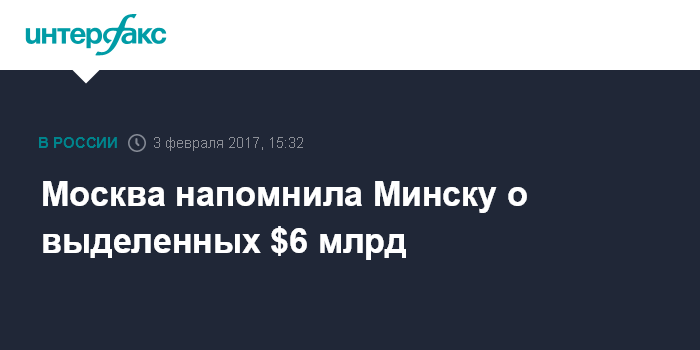 Москва напомнила Минску о выделенных $6 млрд