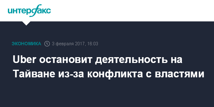 Москва. 3 февраля. INTERFAX.RU - Сервис для вызова водителей Uber приостановит работу на Тайване с 10 февраля из-за конфликта с местными властями, пишет The Wall Street Journal. Uber зарегистрировалась на Тайване в 2013 году как ИТ-компания, но при этом нанимала на работу водителей для оказания транспортных услуг. В связи с этим регуляторы наложили на нее штраф в размере $4,25 млн. По словам представителей властей, Uber сможет возобновить работу только после того, как перерегистрируется как транспортная компания.