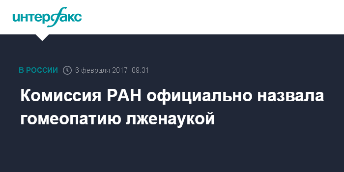 Москва. 6 февраля. INTERFAX.RU - Комиссия по борьбе с лженаукой при президиуме Российской академии наук (РАН) подготовила меморандум "О лженаучности гомеопатии", сообщает газета "Коммерсант".