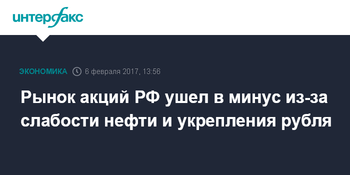 Рынок акций РФ ушел в минус из-за слабости нефти и укрепления рубля