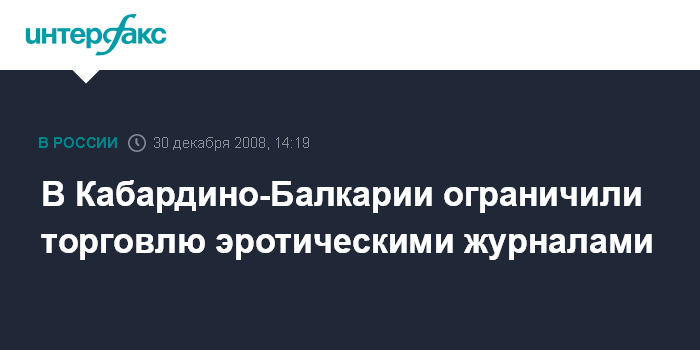 Москва. 30 декабря. INTERFAX.RU - В Черекском районе Кабардино-Балкарии - одном из центров горного туризма республики - ограничено распространение эротических изданий.