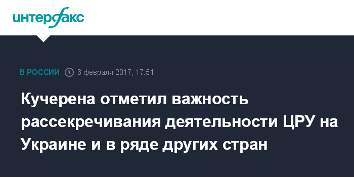 "Сегодня в мире существует очень высокий уровень общественного запроса на роль американских спецслужб в тех событиях в разных уголках планеты, где льется кровь. И потому я считаю очень правильным предложение моего друга Оливера Стоуна к президенту США Дональду Трампу рассекретить материалы о деятельности ЦРУ в этих странах и прежде всего на Украине", - сказал "Интерфаксу" Кучерена.