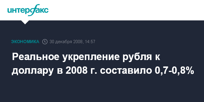 Реальное укрепление рубля к доллару в 2008 г. составило 0,7-0,8%