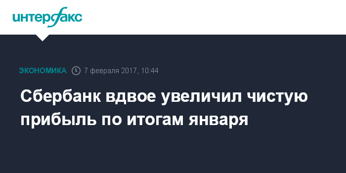Сбербанк вдвое увеличил чистую прибыль по итогам января
