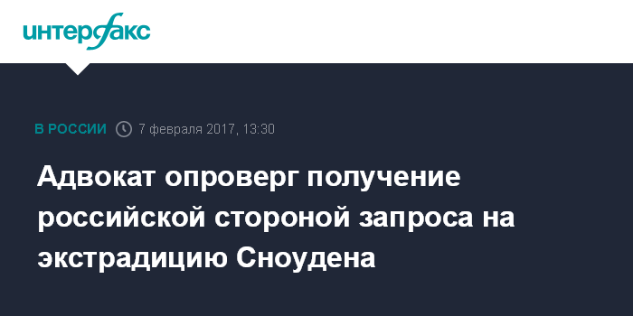 Москва. 7 февраля. INTERFAX.RU - Российская сторона не получала документов об экстрадиции экс-сотрудника ЦРУ Эдварда Сноудена, ему до сих пор не предъявлено обвинение, сообщил адвокат Анатолий Кучерена.