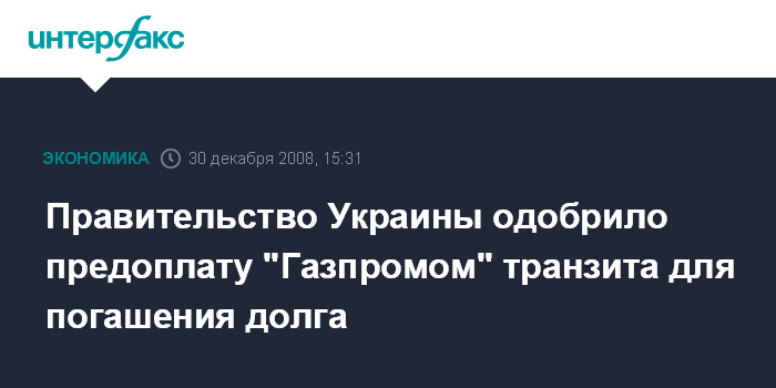 Москва. 30 декабря. INTERFAX.RU - Российское ОАО "Газпром" может осуществить Национальной акционерной компании (НАК) "Нафтогаз Украины" предоплату ее услуг по транзиту природного газа в Европу, а полученные средства НАК направит на оплату ранее закачанного в хранилища газа.