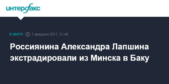 Россиянина Александра Лапшина экстрадировали из Минска в Баку