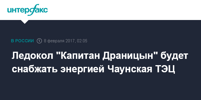 "ТЭЦ хватит мощности, чтобы бесперебойно "питать" корабли". Например, "Капитан Драницын" запросил 300 кВт, а сухогруз ("Синегорск" - ИФ) - до 200 кВт", - сказал генеральный директор "Чукотэнерго" Андрей Кузнецов, его цитирует пресс-служба.