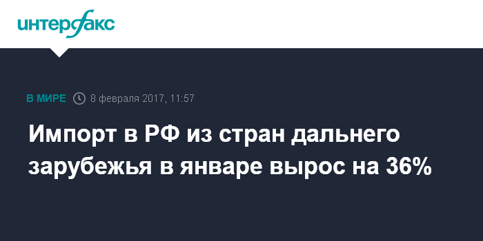 Рост импорта наблюдается на фоне низкой базы января 2016 года. В январе 2016 года импорт из дальнего зарубежья равнялся $8,1 млрд (упал на 17,9%), в январе 2015 года - $9,9 млрд (упал на 40,8%), в январе 2014 года - $16,7 млрд (снижение на 1,4%).